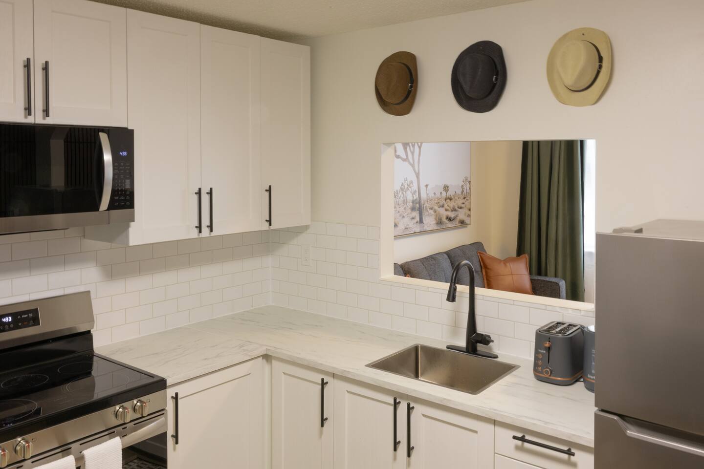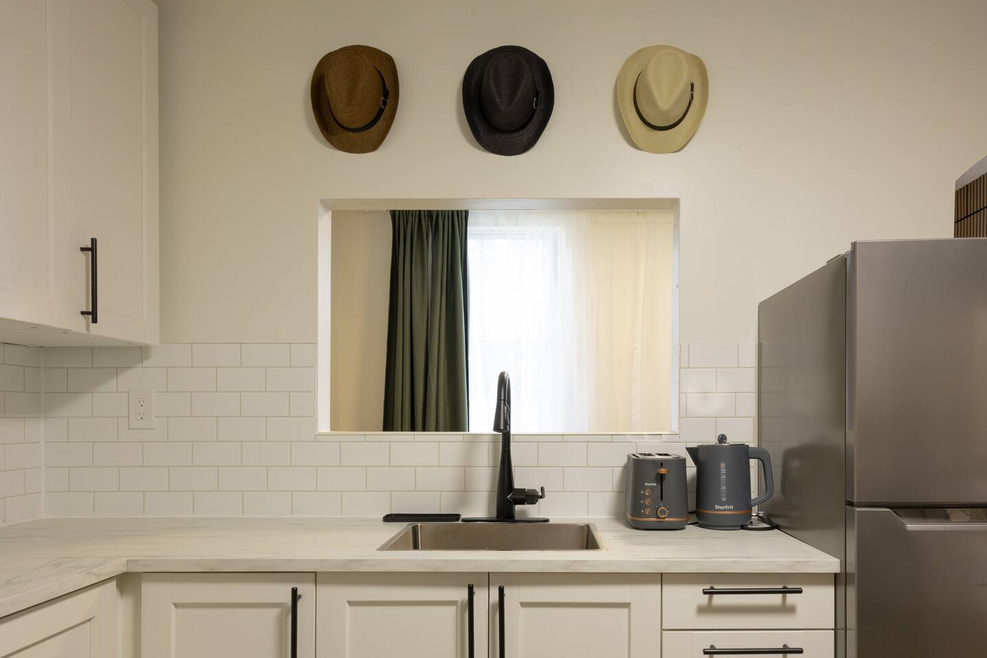 The suite has been renovated to a more modern look and is fully furnished in a modern-day homage to the early 1900’s. Located on the first level of the historic J. Nevler building in Ramsay and was constructed in 1915, it is an Edwardian Commercial style building. Jeremiah Nevler (the original owner), a Russian Jewish immigrant who lived in Calgary with his family. Nevler operated a grocery store in Bridgeland / Riverside before relocating his home and business to this address. He evidently left the City around 1923-24, and sold the building around 1928. Today it is named Hardware Block as it once held a hardware storefront but has been converted to living space. • Downtown skyline views from Scotsman's Hill • Near Calgary Stampede and Inglewood • Great location to downtown Calgary • Brand new furniture and decor • Guest Public Parking on side street The bedroom is very comfortable with a warm cozy duvet, a memory foam queen bed mattress, high end bedding and pillow options for your comfort. There is a privacy curtain with a blackout curtain in the room. For additional comfort we have a portable AC unit available in the summer and a small heater in the winter. The kitchen is well stocked with everything you could possibly need to cook an amazing meal. The kitchen also comes with a choice of coffee and tea. The bathroom also comes with everything you would need and more! Did you forget to pack something? We have you covered with a care bag which includes toothpaste, lotions, shampoo, conditioners, body wash, feminine hygiene products etc. The living room features a sofa bed that folds out into a queen sized bed that is suitable for smaller adults or for kids. The Suite has laundry center within, located in the kitchen. Let us know if you are travelling with an infant or small children. upon request we can accommodate with a pack and play that is safe for overnight sleeping. The suite is immediately to the right after entering in the yellow side door, this suite is suitable for people with mobility issues as this is one ground level. Thoughtful touches • Black out blinds and privacy blinds • 1-Gig High-speed internet • 55 inch TV with Netflix and Amazon Prime included
